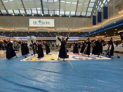 9月22日(日)デュオこうべ内のデュオドームにおいて秋の全国交通安全運動セレモニーが行われ、本校書道部が一日交通安全大使をつとめ、書道パフォーマンスを披露しました。
