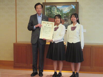神戸市長からの感謝状授与式(書道部)