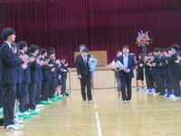 本日、新入生と新2・3年生の対面式ならびに離任式を実施しました。