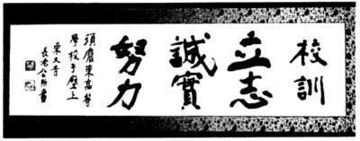 個々の人格が己を高めようとする願望と努力、および、人格相互のまごころとまごころの触れ合いとが教育を存立させる条件であり、そしてまた万古不易の人の倫(永久に変わらない、人の守るべき道)である。この理由により、校訓を「立志・誠実・努力」と定めている。