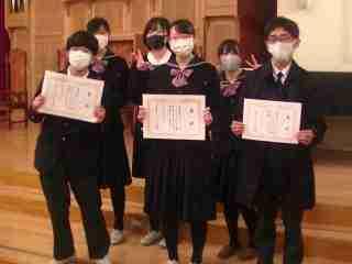 朗読部門表彰式、本校生(右から3番目)銅賞