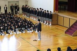 〇離任式では離任される先生方からお話をいただきました。生徒たちは真剣な眼差しで、先生方の話を聞いていました。
