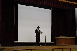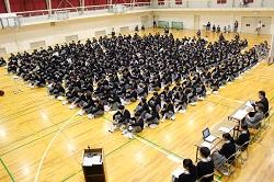 校長先生から、1 年間の締めくくりの時期となりました。本日の午後は、新入生200名を迎え、合格者説明会を行います。1・2 年前、どんな気持ちでこの日を迎えましたか。覚えていますか。皆さんが、太子高校に惹かれ、興味・関心をもったのは、先輩方の様々な活動の姿があったからではないかと思います。これからは、先輩の姿を追うのではなく、それを超える太子高校生になってほしいと思います。春休みには、何になら関心をもち、ひたすら努力し、自分を磨くことができるのか、考えてほしいと思います。一緒に努力できる学校にしましょう。と式辞がありました。