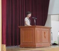 生徒会から校訓・校歌の説明を受けた後、新入生の代表の挨拶があり、