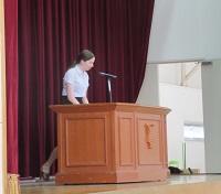 生徒会長、副会長、書記、会計の立候補者の演説と、各立候補者に対する応援演説がありました。生徒会役員として学校をより良くしたいという決意が伝わる演説でした。