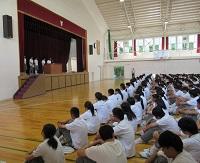 『薬物乱用はダメ。ゼッタイ。愛する自分を大切に』 を合言葉に、薬物乱用による薬物依存の怖さを学びました。また、友人や知人(先輩)からの薬物乱用の甘い誘いから身を守るための、①話題を変える、②同じ言葉を繰り返す(ダメダメ)、③逃げるの3段階の方法を教わりました。