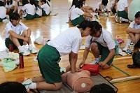 心臓マッサージをしています PTAの方も参加されました