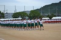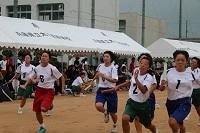 朝は曇、お昼からは小雨となり、少し肌寒い天候でしたが、生徒たちは、元気いっぱいの笑顔で活躍しました。午後の演技で、借り物障害物リレーの順番が変更になり、心配になりましたが、最後の演技、フォークダンスまで全ての演技を終えることができました。
