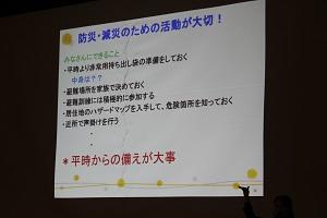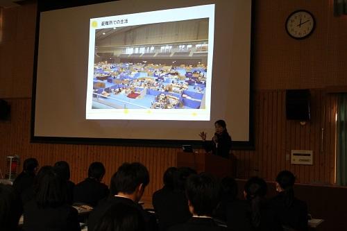 講義では、災害時の看護活動について、避難所で活動した様子を話されました。また、日頃からの防災意識の大切さや、今自分にできることを一緒に考えました。