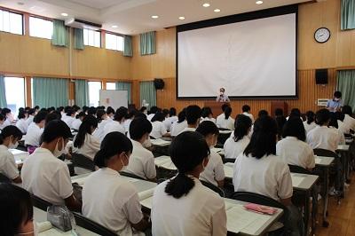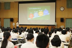 7月10日(金)6限に、2年次生対象の進路講演会を行いました。 進学希望者と就職希望者の 2 グループに分かれて、話を聴きました。 【進学進路講演会】 セントラルルーツ教育研究所 中根彰宏講師 進学に向けての勉強方法, 現代社会で求められる能力, 大学・短大・専門学校の違い, 進路選択の考え方, 受験に向けてのスケジュール, などについて話をしていただきました。 【就職総合説明会】 株式会社さんぽう 清水久美講師 就職活動の流れ, 自己分析・企業(職種)研究, 職業・企業選択の方法, 企業選びのチェックポイント, 企業が新卒者に求めるもの, 高校生活の過ごし方, などについて話をしていただきました。 生徒たちにとって、自分の進路を真剣に考える 有意義な時間となりました。 | |