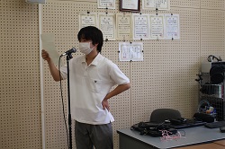 生徒会長立候補者演説 1年生からの生徒会役員の経験を活かし、今度は生徒会の中心となり頑張りたいと思い、立候補しました。後期には、卒業式や球技大会などの行事があります。3年生の先輩がいない中、行き詰ることもあると思いますが、これまでの経験で得た知識や生徒会役員の力を借りて、コロナ禍の制限のある中でも楽しい学校生活が送れるように、精一杯頑張ります。 |