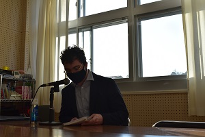 校長先生より、マーロン先生の紹介の後、マーロン先生よりあいさつがありました。 |