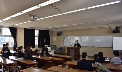 12月22日(木)の午後、46回生 第1回 就職説明会を行いました。 就職を希望している生徒と保護者の方に向けて、進路指導部より話をしました。