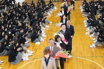 花道をつくり、大きな拍手で、先生方を見送りました。 | |