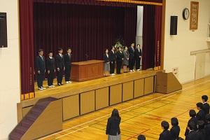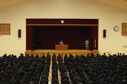 校長先生より、「今年の太子高校のテーマは 『心機一転』 です。太子高校は今年創立50周年を迎えます。心機一転するのにふさわしい年であると思います。また、今年の太子高校のキャッチフレーズは『みる』に設定しました。みるには3つの意味があります。『目で見る』、『物事を調べて行う』、『判断する』、です。自分にはどんな力があるのか気づき、今年1 年成長してくれることを期待しています。」と式辞がありました。