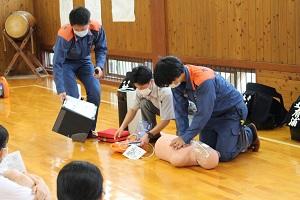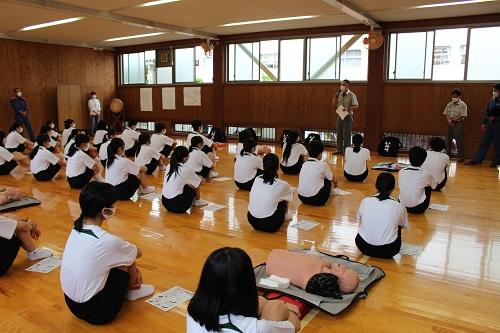 講師として, 西はりま消防組合太子消防署員, 救急訓練を受講された一般の普及員の方をお招きし, 心肺蘇生法講和, 実技指導をしていただきました。