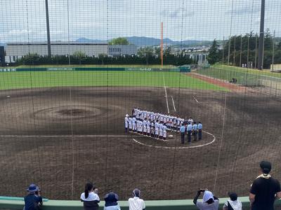 第106回全国高等学校野球選手権大会兵庫大会。本校にとっての初戦は兵庫大会2回戦、淡路佐野運動公園第1野球場における7月13日(土)第2試合でした。部員数が少ないながらもここまで必死で練習し、鍛え上げてきた本校チームは、氷上西高校の1年生1名と女子マネージャー1名とともに山崎高校と対戦しました。開始前7分間のシートノックも試合の一部であるかのような緊張感の中で、選手達は放たれるゴロやフライをきちんと処理し、いいリズムの送球を繰り返してグラウンドの感触を確かめました。美しい ℓ 字の軌跡を描いたキャッチャーフライでノックを締めると、グランド整備中の束の間の休息とミーティングや準備の時間が、応援スタンドもベンチと共に戦意を高めるかのようでした。先攻の多可・氷上西は初回、先頭打者が安打で出塁しましたが、後続を断たれました。その後、2回裏までの山崎高校の得点で、苦しい展開を強いられましたが、いくつかのピンチをチーム全員ででしのぎました。その後も投手の力投と大切な場面での野手の好守備が光り、3回以降は得点を許しませんでした。1球1球のプレーに対する選手の集中が応援スタンドにも伝わり、随所で拍手や歓声が上がりメガホンを打ち鳴らす音が響きました。試合については勝ちを収めることは叶いませんでしたが、この日までチームとともに歩んできた選手一人一人の思いは、これからも途絶えることなく、いつも人生のエネルギーとして、挑戦しようとするとき、継続すべきとき、乗り越えるべきとき、飛躍するとき、そして羽ばたくときに大きな力を与えてくれることと思います。昨年秋の新チーム結成以降、秋季大会と春季大会でそれぞれで勝ちを収めて成長を続けたチームの夏が終わりました。