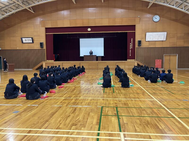 本日は、多可町健康課および多可町いずみ会の皆様にお越しいただき、就職・進学を控えた3年生に、一日のエネルギー源となる朝食を取ることの大切さを教えていただきました。