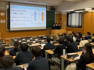 1月7日GS科一年生がGSⅠの授業の一環で、ミニ探究発表会を大阪大学理学部の講義室をお借りして開催しました。