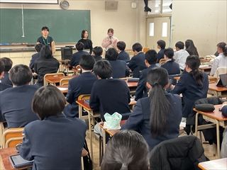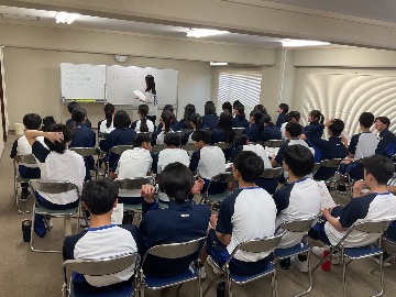 これから課題研究を始めるGS科1年生は、甲南大学 甲元先生からリサーチプランの立て方を学び、その後、先輩方から課題研究を進めるにあたっての貴重なアドバイスを受けました。