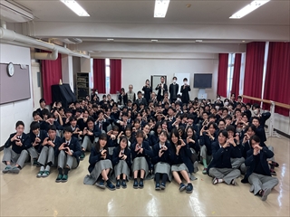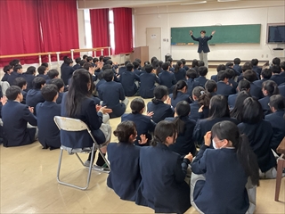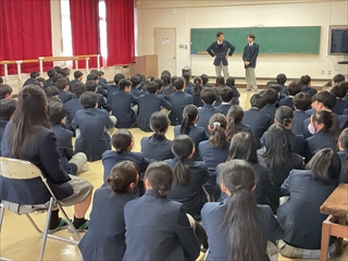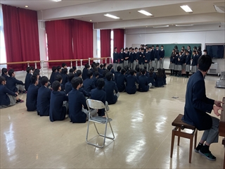 39回生の卒業式を翌日に控え、GS科、1、2、3年生が多目的ホールに集合し、GS科送別会を実施しました。GS科では、入学の際にGS科対面式を、卒業の際にGS科送別会を実施しています。送別会では、在校生が企画して、卒業生を楽しませます。