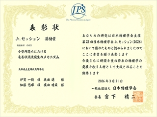 GS科2年 日本物理学会Jr.セッション 奨励賞