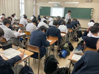 GS科1年生が学校設定科目「GSⅠ」の授業として、大阪大学大学院理学研究科 教授 久保孝史先生、同研究科 教授 舩橋靖博先生 をお招きし、講義を受けました。