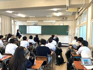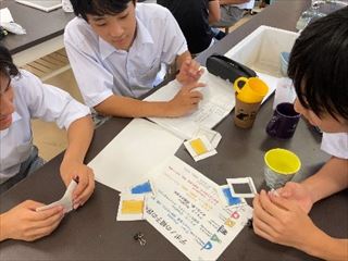 「理数化学」の授業で「酸化還元」について学習し、それがどのように自然や社会と繋がっているのかを考える良い機会となりました。久保先生、舩橋先生 ありがとうございました。