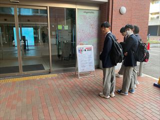 今回の発表では、ポスター形式の良さを活かし、手元に用意した端末でセルオートマトンを実際に体験していただきながら、複雑な内容もわかりやすく伝えることができました。他校の生徒や大学関係者の先生方とも互いにセッションを交えながら活発な交流を行い、その名の通りサイエンスに浸る貴重な一日になりました。
