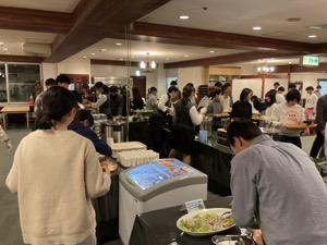 また、皆さん楽しみにしていた夕食はバイキング形式で、おかわりを何度もしている人も見かけました。