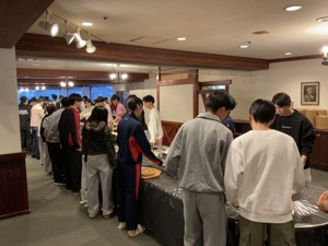 到着後、発送した荷物の受け取り、スキーやスノーボードのレンタル品のサイズ合わせ、そして宿泊する部屋に入り、自由時間となりました。