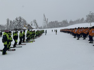 朝食後、スキーウエアに着替えて、クラスごとに写真撮影、その後スキー学校の開校式を行いました。