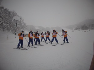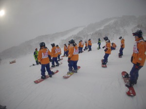 少し雪が降っている状況でしたが上級者、中級者、初心者とレベルに分かれて元気に実習を行なっています。