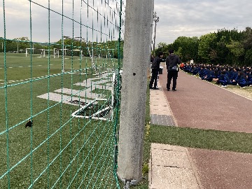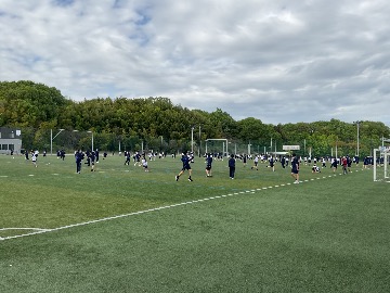 アサーショントレーニングの次は屋外で、クラスをバラバラにしたミックスグループでの活動です。とても広い人工芝のサッカーフィールドで自己紹介ゲームやバナナ鬼と呼ばれる鬼ごっこの変形版で走り回ったりして交流を深めました。