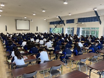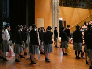 39回生の卒業式を翌日に控え、GS科、1、2、3年生が多目的ホールに集合し、GS科送別会を実施しました。GS科では、入学の際にGS科対面式を、卒業の際にGS科送別会を実施しています。送別会では、在校生が企画して、卒業生を楽しませます。