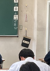 38回生GS科の先輩が学問の神様大宰府天満宮の合格祈願のお守りを持ってきてくれました。受験シーズンを迎え、受験の苦しさを乗り越えてきた先輩のこうした激励は本当に心強くうれしいですね。3年生は1月17日、18日の大学入学共通テストに向けて演習に励みます。