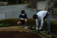 11月22日金曜日の放課後、ゆずり葉花壇の冬苗の植え替えを行いました。天気予報では小雨が降るとあったので、心配でしたが、何とかお天気ももって植え替えをすることができました。今回は1年生緑化委員が担当です。
