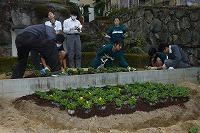 どこに植えるか、校務員さんの指導のもと丁寧に決めていきます。