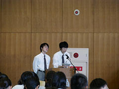 職員による学校説明と、生徒会による県宝Life(学校行事・部活動など、学校生活)