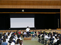 体育館での行事が終了後、参加者の皆さんは校舎の方へ移動し、体験授業へと向かいました。