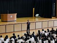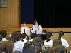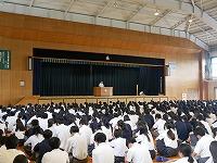 英語検定合格者、陸上部、ソフトテニス部等への表彰伝達があり、
