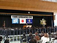 新入生が吹奏楽部の音楽に合わせ入場です。
