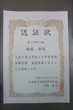 部活動等で近畿大会以上の成績を収めた生徒に、生徒会功労賞が贈られました。