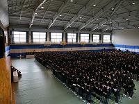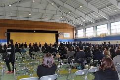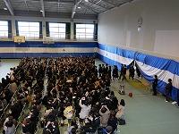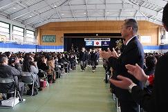 離任される先生方が中央を進み、体育館をあとにしました。「先生方本当にありがとう」の拍手がしばらく鳴り続けました。