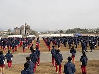 生徒の点呼が行われ、開会式後に県宝体操にて準備運動!