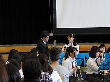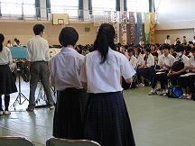 吹奏楽部の演奏で全員が校歌を歌い、終業式は終了しました。