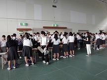 吹奏楽部の演奏で全員が校歌を歌い、始業式は終了しました。