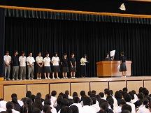 部活動等で近畿大会以上の成績を収めた生徒に、生徒会功労賞が贈られました。