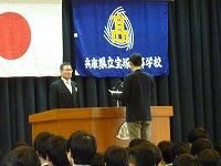 3年間無遅刻無欠席を達成した生徒に皆勤賞が贈られました。