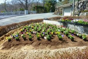 学校周辺の住宅地の花壇に植栽を行いました。2016年3月22日